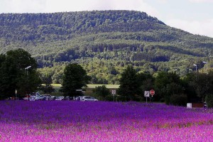 Rittersporn-Erntefeld an der Schwäbischen Alb