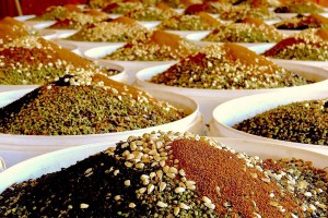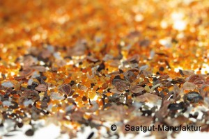 Saatgut-Gemenge zum Ausstreuen vorbereitet