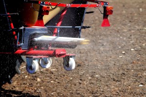 Saatgut wird ausgebracht - Einsaat auf großen Flächen
