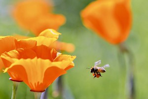 Bienen lieben Backmohn-Blüten, Photo Vera Stuchelova