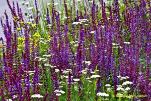 Salvia nemorosa und Sommerblumen in der Entwicklung